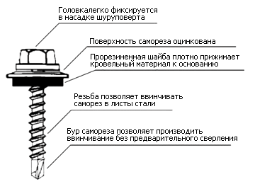 Крепление металлочерепицы выполняется с помощью саморезов.