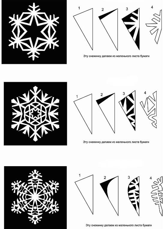Обратите внимание, как с правой стороны выглядят шаблоны-заготовки, и как слева выглядит сама снежинка, получившаяся из вырезанной заготовки.