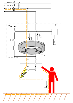 Для того, чтобы правильно подключить УЗО - надо !обязательно! иметь "землю", т.е. заземление. Давайте вначале всё-таки посмотрим на принцип по которому УЗО спасает человека от удара током:
