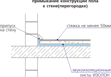 9) Сверху плит "Шумостоп" укладываем армированную полиэтиленовую плёнку, делаем напуск на стену.
