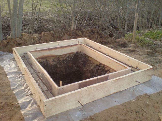 Для туалета на улице следует выбрать монолитный фундамент. Его устройство определяется размером ямы. Как правило, яму копают в форме кувшина – узкое горлышко вверху и расширяющееся тело ямы книзу. Больше сложностей возникает если вырыта обычная яма квадратной или прямоугольной формы. Я недавно накрывал такую яму размером 1,2Х2,0. Предлагаю свой вариант заливки монолитного фундамента.