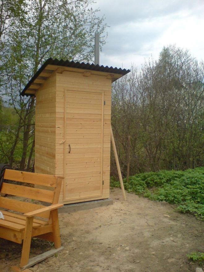 У меня были в наличии железобетонные шпалы длиной 2,7, которые я уложил по длине ямы с выступом за ее пределы 0,35 м. Если таких шпал нет, то можно обойтись бордюрами меньшей длины, уложенными поперек ямы. Лучше, если бордюры будут выступать за края ямы на 40-50 см. Вместо бордюров можно использовать швеллере или, в крайнем случае, трубу диаметром 1,5-2 дюйма. Шаг укладки труб-бордюров 0,5 м. Снизу требуется установить риштовку для того, чтобы раствор не провалился в яму. Для этого подойдут старые негодные доски или куски шифера. В них следует просверлить отверстия и прикрепить к уложенным перемычкам. Все, теперь можно выполнить армирование, применяется прутья арматуры диаметром 10-12 мм. Остается установить опалубку и залить бетоном. Не забудьте оставить отверстие в полу фундамента, его размер зависит от того, будет ли устанавливаться унитаз. Садовые унитазы – прекрасное решение для летнего дачного туалета – нет необходимости переживать о том, что маленький ребенок упадет в яму, да и вид помещения более респектабельный.