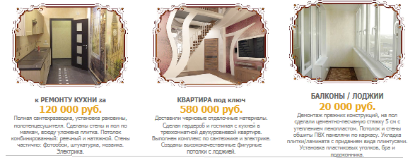 Компания предлагает большой перечень услуг по проведению ремонта квартир, офисов и так далее. Расценки за один квадратный метр от 1400 рублей. Для примера: