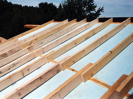 Для соединения стропил внахлест выполняется их стыковка. При этом длина заходящих друг на друга стропил должна быть равна или превышать 1 м. В рядах крепление следует выполнять в шахматном порядке.