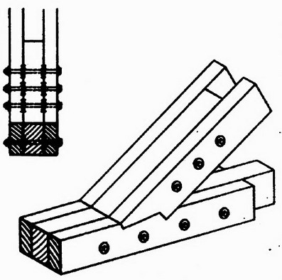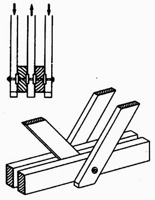 Использование одного или двух зубьев будет зависеть от величины угла наклона стропила. Кроме врубки, связывание стропильных ног с балками можно выполнить при помощи болтового соединения либо болта и хомута.