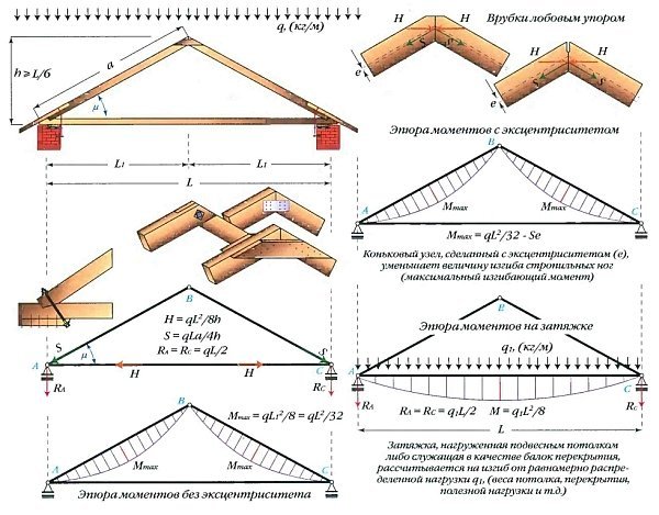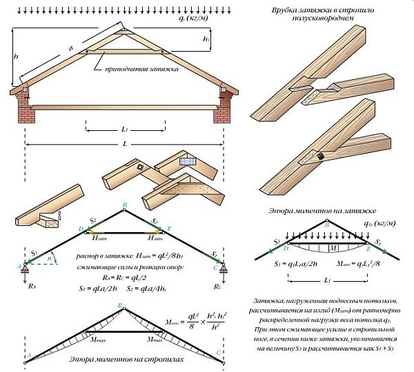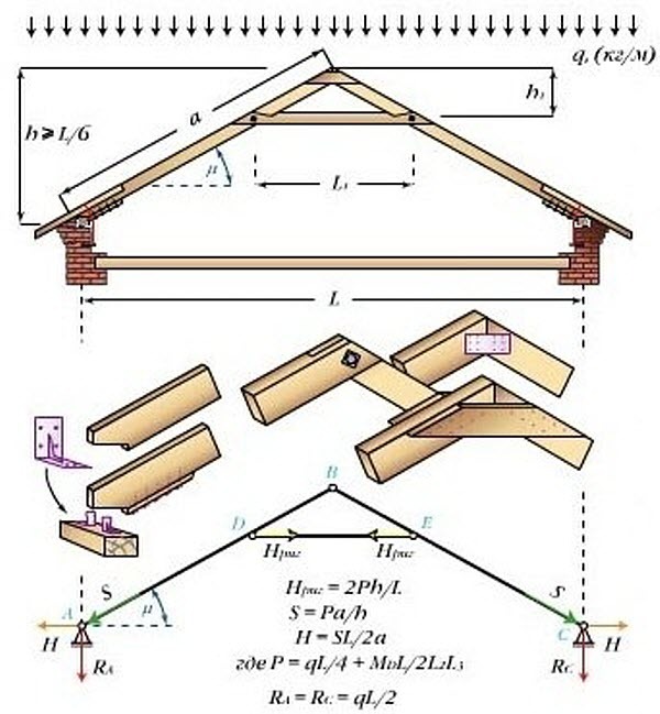 Во всех случаях нужен полный расчет всей стропильной системы, всех основных нагрузок которые будут действовать на крышу. При проектировании висячих стропильных систем следует учитывать следующие факторы: