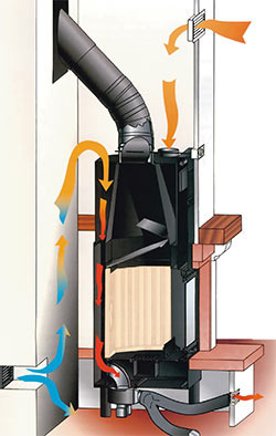Камины в таких помещениях не должны соприкасаться со стеной.