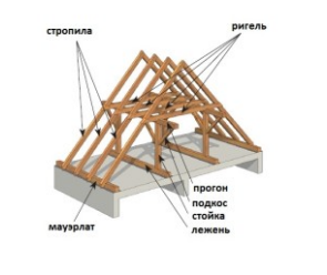 Это довольно таки прочная крыша, которой не страшны практически никакие нагрузки. Сколько и чего нужно по штукам и метражу, естественно определяется из того какие размеры будут у крыши. Если же крыша не очень большая, то вполне возможно из этой конструкции убрать прогон,подкос,стойку и лежень. На этом сэкономится часть материала (который сейчас не очень дешёвый) и крыша не потеряет своей прочности при условии, что стропила будут выполнены из доски не менее 50х180 см. Но на этом затраты на крышу не закончатся. Понадобятся доски для обрешётки, чем то надо будет обшить фронтоны и подшить все карнизы, да и кровельный материал тоже стоит немалых денег. Так что комплект как мы видим достаточно обширный. Но не стоит экономить на крыше, ведь от того какая она будет, такая и будет погода в доме, что, согласитесь немаловажно.
