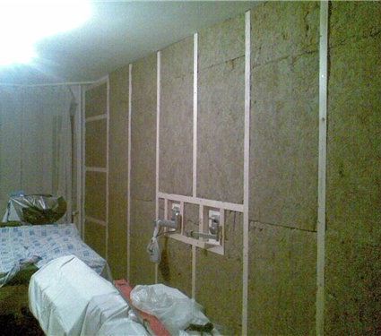 Монтаж практически такой же как и в случае с минеральной ватой, делается каркас под гипсокартон и далее укладывается "Шуманет-БМ".