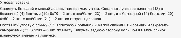 Каждый производитель выпускает разные диваны по типам и видам и схема сборки не может быть общей для всех, поэтому искать необходимо именно схему к той модели, которую необходимо собрать. Приведу пример двух моделей для ясности, в чём имеются различия: