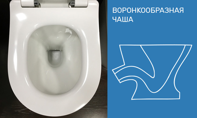 унитазы с "воронкообразной чашей" считаются более гигиеничными.