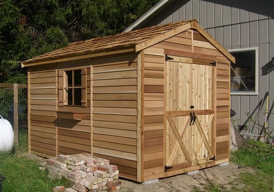 Стены снаружи обшить обрезной доской или листами ОСП, затем - сайдингом, вагонкой или доски покрыть грунтовкой и покрасить. Остается установить окна и дверь.