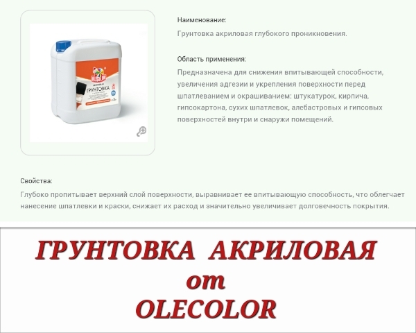 Не плохое сочетание цена-качество, у грунтовки акриловой от Olecoĺor.