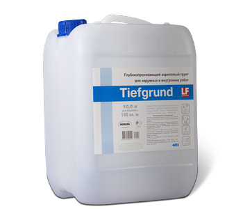 Для бетонных поверхностей, с последующей шпатлёвкой и покраской, лучше всего применять акриловую грунтовку глубокого проникновения на основе полимеров из акрила.