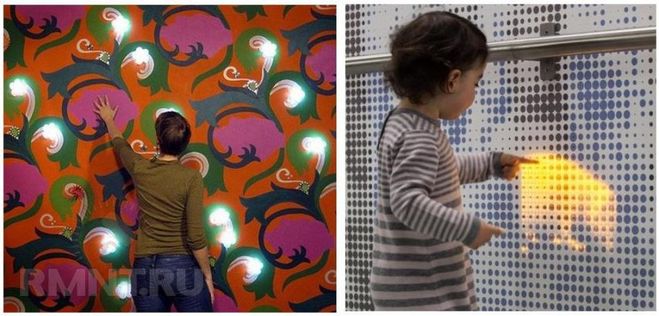 Каждый год на рынке отделочных материалов появляются оригинальные новинки, например, интерактивные цифровые обои. Они способны воспроизвести любое изображение, будь это статическое или динамическое. В обоях встроены датчики, девайсы, это целая интеллектуальная сложная система, которая состоит из элементов сетевого интерфейса, освещения, генератора звуков, аудио и других элементов. Можно обоями руками дотронутся до обоев и декоративная отделка от прикосновения само будет регулировать температуру в помещение, ее освещенность, уровень звука в помещении.