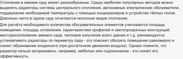 А потом колличество этих обогревательных приборов умножить на 2-2,5. Именно столько приборов в зимнем саду вам потребуется.