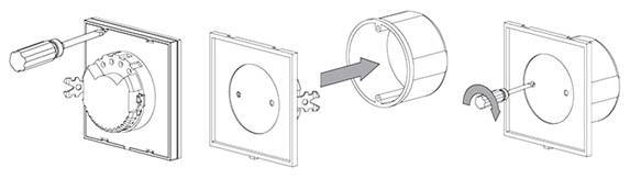 Если настенного монтажа (наружного) то устанавливается без подрозеткника как наружная розетка, отверстия дюбеля + шурупы.
