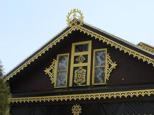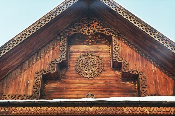 А вот фото оригинальной отделки фронтона деревянной резьбой