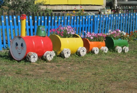 Как сделать клумбу-паровозик?