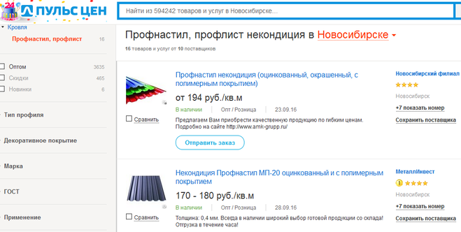 Вот объявления, где предлагаются некондиционные и бракованные товары из профлиста.