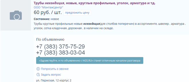 По верхнему объявлению можно позвонить по телефону +73833830775, по другому объявлению на номер +73832277438.
