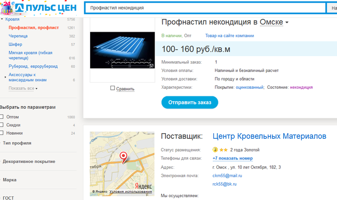 Центр Кровельных Материалов продаёт некондиционный профнастил. Он на ул. 10 лет Октября, 182. Связь по телефону +73812508450. Цена может быть вдвое меньше, чем у не уценённого профлиста.