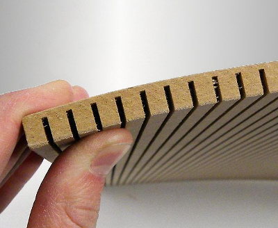 Есть ещё вариант со самостоятельной изготовкой гнутого МДФ, если Вы будете делать фасады по одному шаблону, или даже по нескольким, то очень быстро освоите пропилы обычных панелей МДФ, пропилы делаются с определённым шагом, в зависимости от радиуса изгиба.