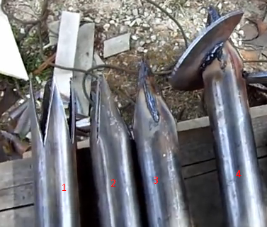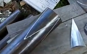 Вырезаем треугольники по разметке, сгибаем лепестки друг к другу и свариваем их между собой. На "заточенную" трубу одеваем винт и также привариваем.