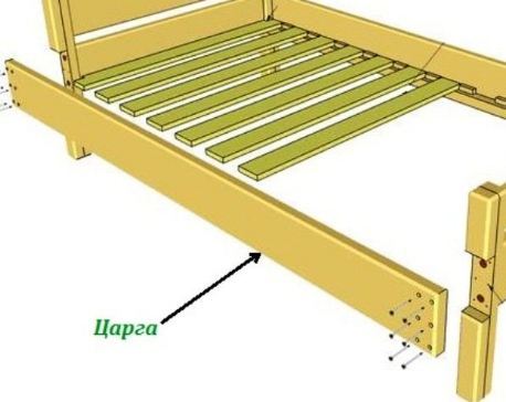 Для установки матраса на кровать с внутреней стороны царг крепятся бруски (их длина, шаг между ними от вида кровати и от матраса).