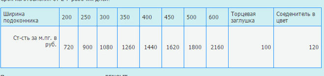 К примеру ламинированный подоконник за погонный метр при ширине 100-о мм, попросят 950-т рублей в розницу и 850-т рублей оптом.