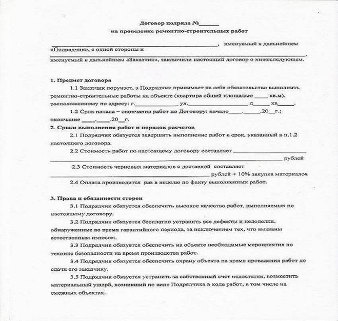 Договора бывают разными, у каждой строительной компании у каждой бригады свой договор, которые они составляют.