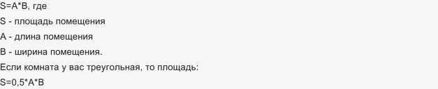 Площадь комнаты высчитывается умножив длину комнаты на её ширину.