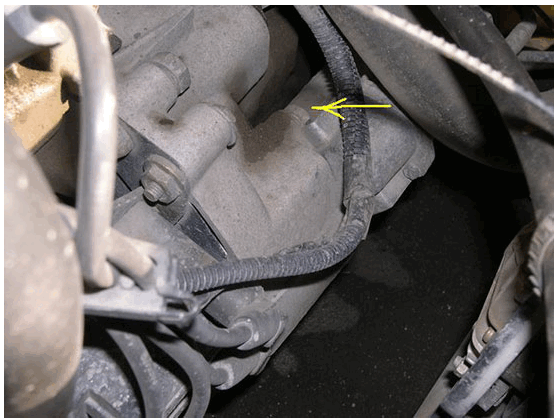 10) Полностью выкрутите нижний болт стартера и третий крепежный болт коробки передач. Около правого шруса есть еще одна гайка — ее тоже надо открутить.