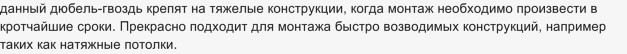 Способ монтажа при этом значительно упрощается. Сверлится отверстие, очищается от пыли и просто вставляется данный дюбель-гвоздь в отверстие, через деталь которую необходимо прикрепить. При этом дюбель-гвоздь забивается молотком.