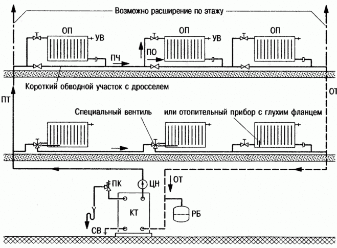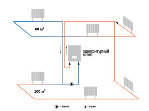 Вот не плохая схема одноконтурной системы отопления.