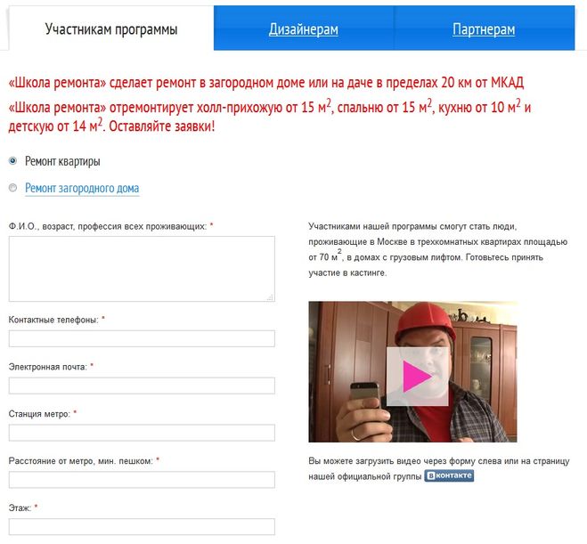 При подачи заявки Вы должны знать, что "школа ремонта" работает, только по Москве не выезжая за пределы МКАД (кольцевая дорога).