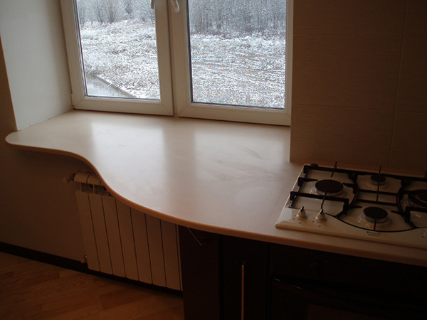 Я бы посоветовала вам сделать подоконники из полистоуна - это искусственный камень, плитам которого очень легко придавать самые различные формы. Он как раз используется для изготовления подоконников, а так же столешниц. Толщина плит полистоуна бывает бывает разная, и цветовая гамма у этого материала тоже достаточно широка. Поэтому подоконники из искуственного камня очень легко вписываются в любой интерьер и смотрятся очень презентабельно.