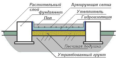 Примерная схема обустройства такого пола может выглядеть следующим образом: