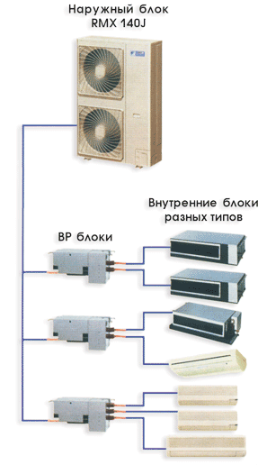Вообще-то разница в конструкции этих двух систем кондиционирования соверщенно незначительна и заключается в разном количестве подключаемых к системе блоков и длиной трассы.