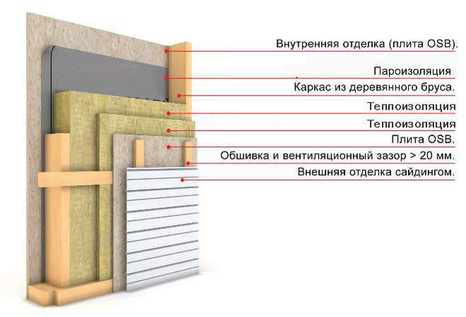 Между облицовкой можно заложить утеплитель (если он нужен) не забываем о паро-изоляции и гидроизоляции со стороны улицы.