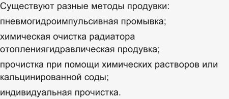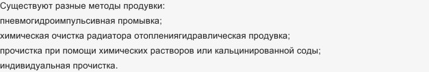 Такой способ очистки отопительной системы значительно повышает теплоотдачу радиаторов, так как теплоноситель проходит в бОльших объемах из-за увеличения внутреннего диаметра труб (до первоначального состояния)и удаления теплоизоляционных внутренних отложений.