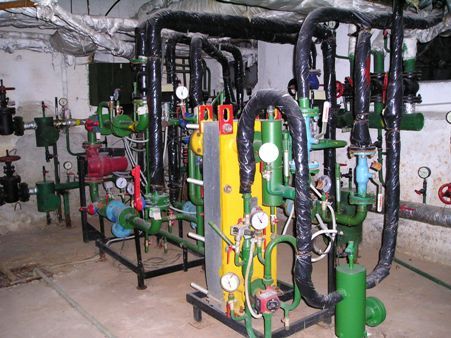 Используя свой теплообменник, находящийся в подвальном помещении (второе фото топик-стартера), можно отсечь отопительную систему детсада от централизованного теплоснабжения и перевести в закрытый режим с помощью циркуляционного насоса - пустить теплоноситель по малому кругу.