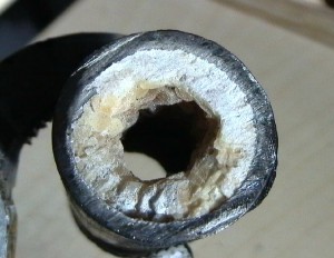и соответственно замедляется циркуляция теплоносителя. В результате чего конвекторы слабо греют, так как объем теплоносителя уменьшился, да плюс ко всему еще и теплоизоляционный внутренний налет уменьшает теплоотдачу труб конвекторов (именно от труб тепло передается на теплоотдающие пластины приборов).