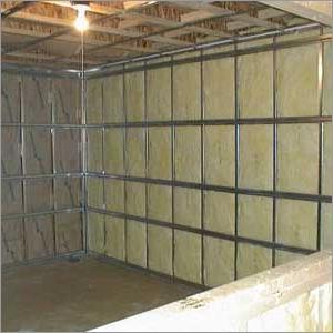 пространство между профилями заполняется шумоизоляционными плитами.
