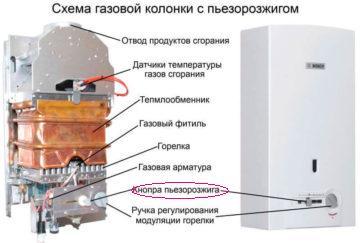 Если на колонке есть всё вышеперечисленное и ещё есть и доп. кнопка в самом низу( на ней обозначен разряд, искра электрическая) - у вас колонка с пьезорозжигом.