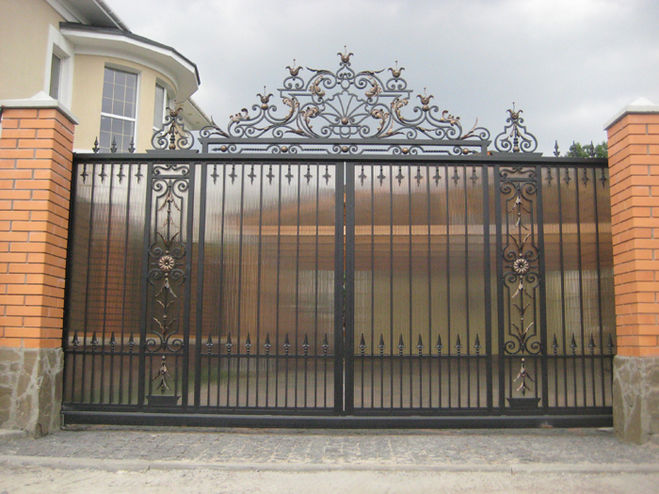 Мода на кованные элементы в декоре ворот и решеток сейчас также популярна как и сотни лет назад. Многие в школе видели картинку как матросы штурмуют кованные ворота зимнего дворца. Да там были просто произведения искусства, а сейчас многие делают у себя что то подобное. Вот примеры.