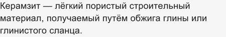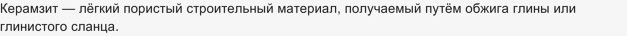 Керамзит представляет собой легкий пористый материал, преимущественно овальной и округлой формы разного размера, получающийся при быстром обжиге глин. В переводе с греческого керамзит значит "обожженная глина".