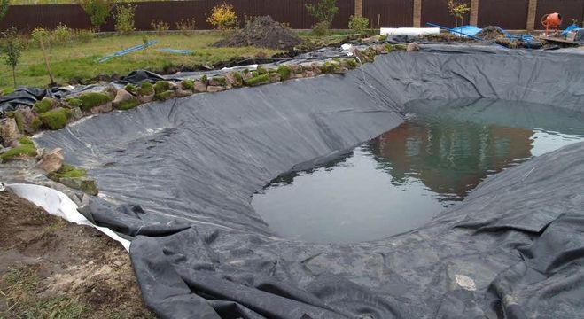 В настоящее время проблем с гидроизоляцией прудов практически нет . Для этой цеди применяются различные полимерные пленки, например из бутилкаучука,поливинилхлорида или геотекстиля. Так как сам пруд у вас ужн есть , то апм осталось приобрести пленку застелить как показано на фото.