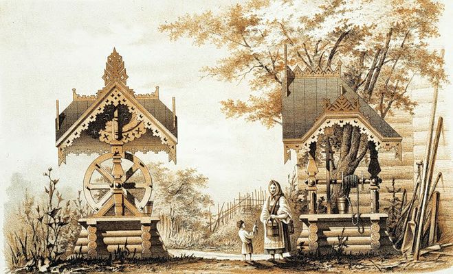 Как только колодезь будет готов, можно повесить колесо с валом.