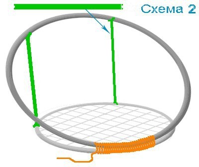 Можно сделать подвесное кресло из двух металлических обручей диаметром 70 и 110 метров или сделать такие обручи из металлопластика,что будет надежнее.